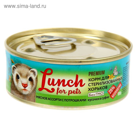 "Lunch for pets" для молодых хорьков 100гр.цыплёнок со злаками паштет крышка/ключ