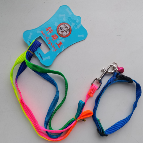 Поводок с ошейником и бубенчиком "Радуга". Яркий поводок в комплекте с регулируемым ошейником - это практичное и удобное решение для ежедневных прогулок с вашем питомцем, на свежем воздухе. С помощью пластиковой пряжки, вы сможете отрегулировать размер ошейника под вашего питомца. Правильно подобранный размер ошейника не стесняет движения и не натирает кожу питомца, что позволяет ему чувствует себя в нем уверенно и комфортно. Ошейник оснащен металлическим кольцом для поводка и пластиковой застежкой-фастексом, которая позволяет в считанные секунды зафиксировать ошейник на собаке и так же легко снять его. На поводке имеется прочный карабин и удобная ручка-петля.