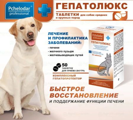 "Гепатолюкс" д/лечение и профилактики заболеваний печени средних/крупных пород собак 50таб арт.1085